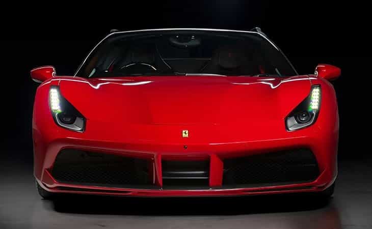 The Ferrari 488 is powered by a 3.9-liter twin-turbocharged V8 engine, delivering 661 horsepower and 561 lb-ft of torque, with a top speed exceeding 205 mph. Equipped with Brembo brakes, it stops from 60 mph in just 96 feet. Its advanced aerodynamic design, electronic rear differential, and Ferrari's Side Slip Control system ensure precise handling and control during high-speed cornering.