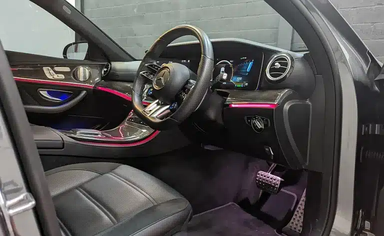Step inside the Mercedes-Benz E53 AMG and you’re greeted with an interior that blends refined craftsmanship, cutting-edge technology, and driver-focused comfort. The seats are upholstered in high-quality leather, offering both support and luxury for long drives or spirited sprints.