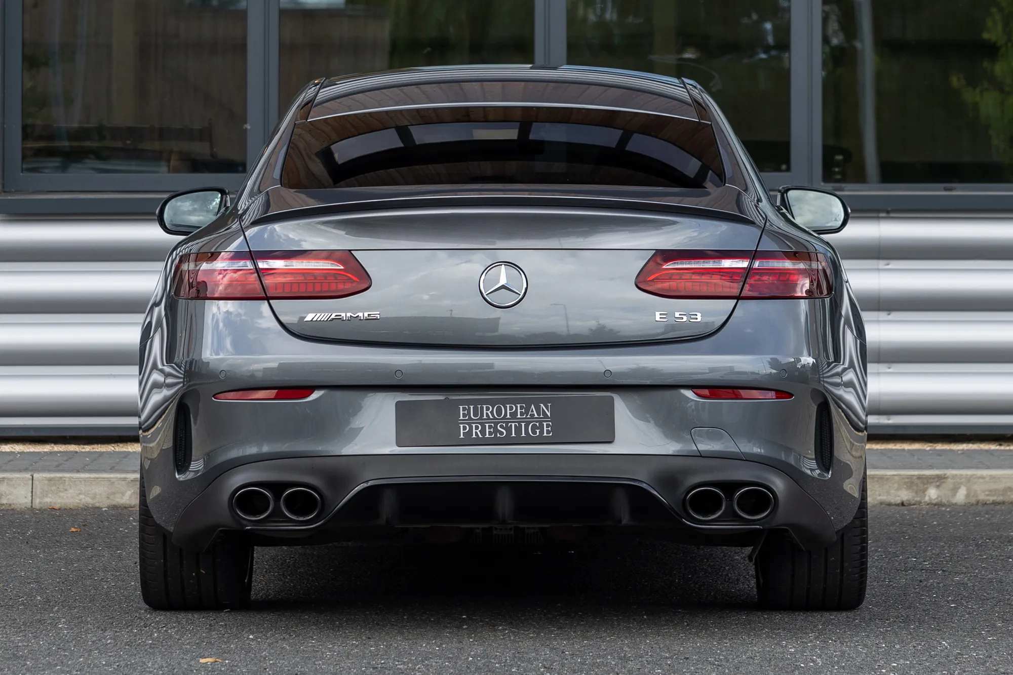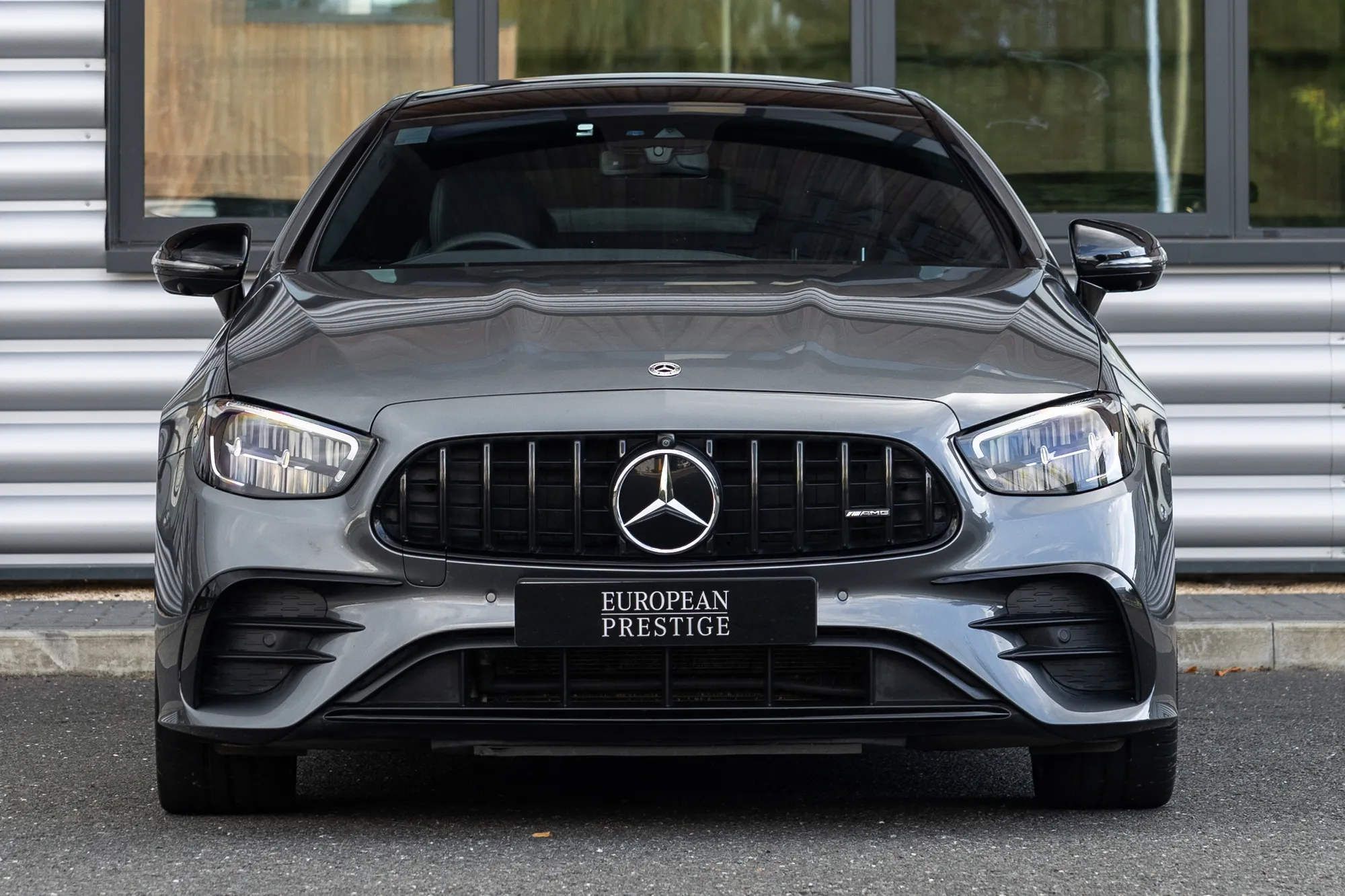 The exterior design of the Mercedes-Benz E53 AMG strikes a perfect balance between sporty aggression and timeless elegance. At the front, it commands attention with a bold diamond-pattern radiator grille, proudly featuring the iconic Mercedes-Benz emblem at its center — a symbol of performance and prestige.